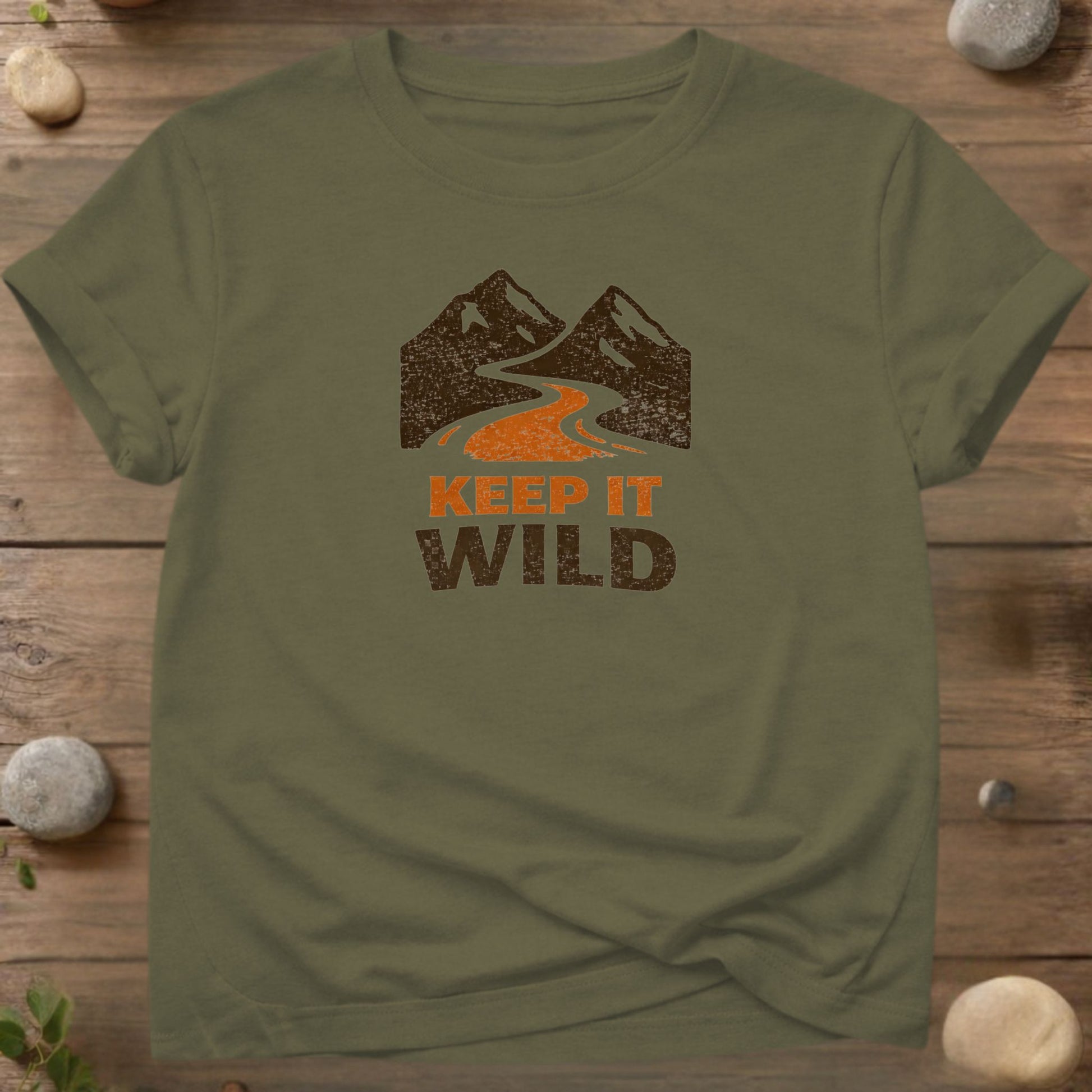 Keep It Wild features a bold mountain landscape with a winding path, symbolizing freedom, adventure, and respect for nature. Designed for those who choose the outdoors over the ordinary, this piece represents a lifestyle rooted in exploration and simplicity.