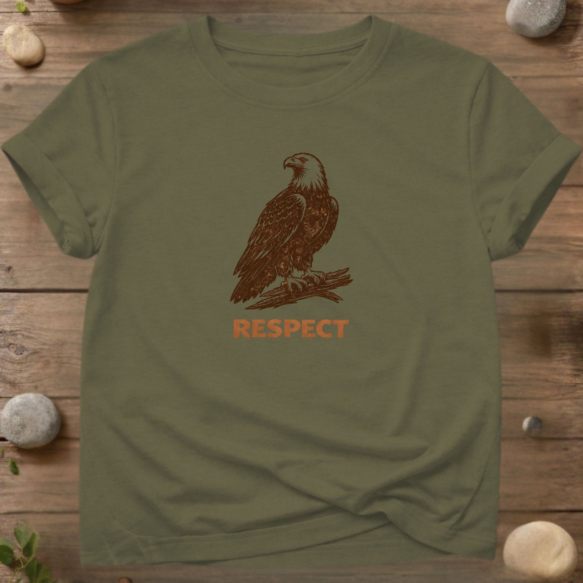 Respect features a solitary eagle perched in silence, representing awareness, power, and deep respect for the wild. Minimal in form yet strong in meaning, this design speaks to those who understand that true respect is quiet, earned, and rooted in nature.